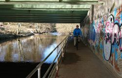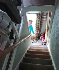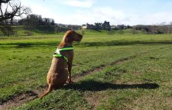 En dan is daar eindelijk het bewuste muurtje waar we overheen moeten. Fleur kijkt even verrast wat ik van haar wil maar dan gaat ze toch na wat aanwijzingen het trappetje op van het muurtje, kruipt onder de draad door (huh draad draad wat moet ik daar mee?) en wacht braaf totdat ik bij haar ben om verder te helpen aan de andere kant.