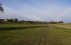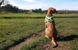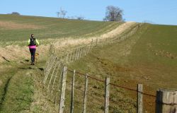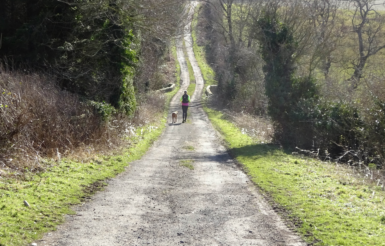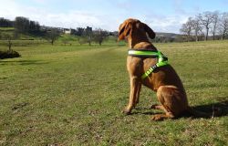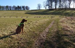 Na aankomst in het dorp gaan we gauw op pad. Eerst even door het dorp en daarna ergens een zijstraat in. Gelukkig ken ik inmiddels de weg op mijn duimpje. Vroeger moest ik vaak op de kaart kijken als ik weer eens een route gemaakt had maar nu loop ik het gewoon natuurlijk. Alleen weet Fleur nu niet de weg en wist mijn oudje dat wel! Ik laat haar al snel lekker loslopen. Ik ben benieuwd hoe dat gaat want er lopen overal fazanten en konijnen en in de velden staan ook overal schapen. Wel blijven opletten dus!