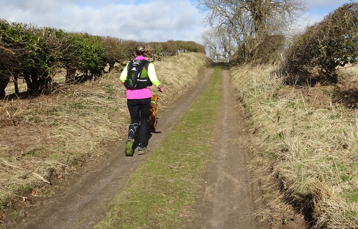 Er gebeurt eigenlijk niets op de route. We komen geen mens tegen en ook qua dieren is het eigenlijk rustig. Er fladderen en klokken wat fazanten maar verder niets dus Fleur hoeft ook niet als een dolle te jagen gelukkig. We hobbelen inmiddels weer lekker door het bos De route is afwisselend en dat is leuk lopen zeker op een beetje afstand.