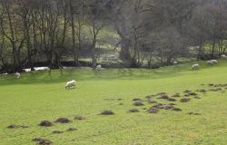 We hobbelen door, ik geniet van het uitzicht en van Fleur. We komen steeds dichter bij de cave maar moeten eerst nog even over een stukje waar veel schapen staan. Fleur gaat dus weer even aan de riem. Goede oefening!