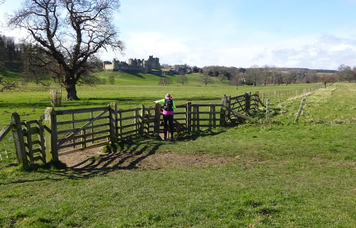 Zonder gedoe komen we dus weer bij Swinhoe farm aan waar ook de manege is. Even langs de koetjes die nog binnen staan en ons verrast aankijken. Het interesseert Fleur geen biet volgens mij en we hobbelen door. Over het erf van de manege waar tot mijn verrassing de paarden buiten de weide en de bak staan en ons achtervolgen richting het veld waar wij doorheen moeten. Voorheen had ik het ook wel eens aan de stok met die nieuwsgierige paardjes maar dan stonden zij in het veld waar ziva en ik overheen moesten en achtervolgden ze ons door de enkelhoge modder troep in het veld. Nu kan ik door het hekje glippen en even een kiekje maken van de paardjes.