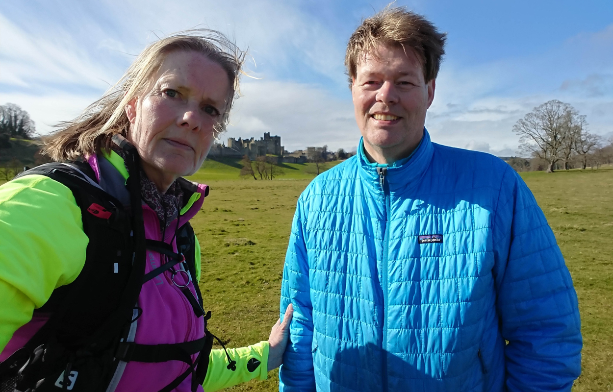 Inmiddels hebben Fleur en ik al een paar etappes van de ultra afgelegd. Maar vandaag is het zulk mooi weer dat ik besluit naar St Cuthbert’s cave te gaan en niet weer richting de kust. Er staat weinig wind en het zonnetje schijnt. S. gaat waarschijnlijk richting Belford fietsen zodat hij daar is als ik aankom. We kunnen dan samen wat drinken en eten bij de farmshop! Als hij nou maar niet te vroeg vertrekt want ik heb echt wel even nodig als ik ook nog de drone ga oplaten etc. en de afstand zelf is ook al best fors. Afwachten maar. Eerst maar eens vertrekken richting Belford. Het heeft weer gevroren dus ik moet eerst even krabben. S. heeft al bijna alles eraf maar natuurlijk heb ik weer wat te zeuren. Hij drukt niet hard genoeg nadat hij ooit alle ruiten beschadigde tijdens het krabben…..