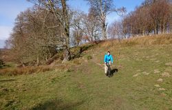 We hobbelen over het veld en dat is dit jaar prima te belopen gelukkig. Inmiddels is S. ook onderweg met zijn fietsje. Volgens mij is hij er dus veel te vroeg straks maar als hij eigenwijs is…. dan moet dat maar. Mijn planning lijkt echt wel te kloppen dus vooruit maar. Ik ga niet enorm haasten, want dat kan toch niet op dit laatste deel. Eerst over het veld, daarna dat muurtje en nog een lastig stukje met schapen en modder. We zien wel. Stap voor stap! Het uitzicht is hier geweldig en ik maak nog wat foto’s van dit laatste stuk.