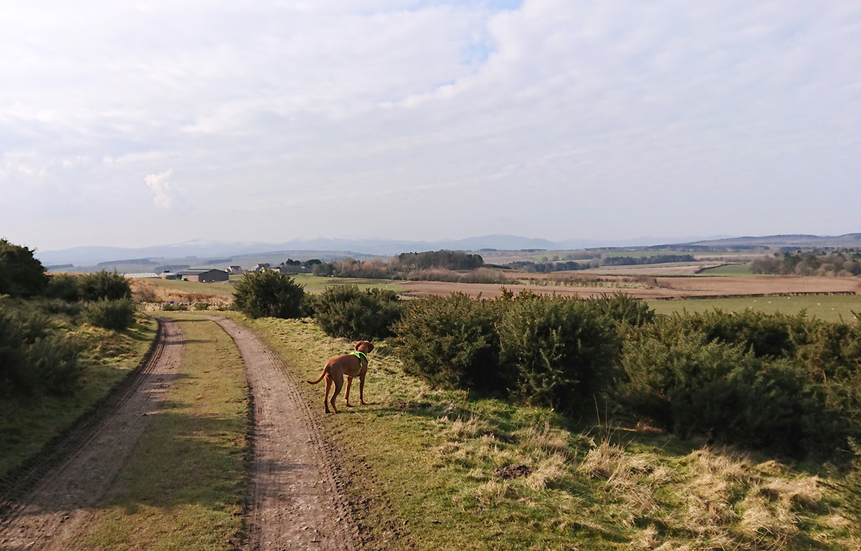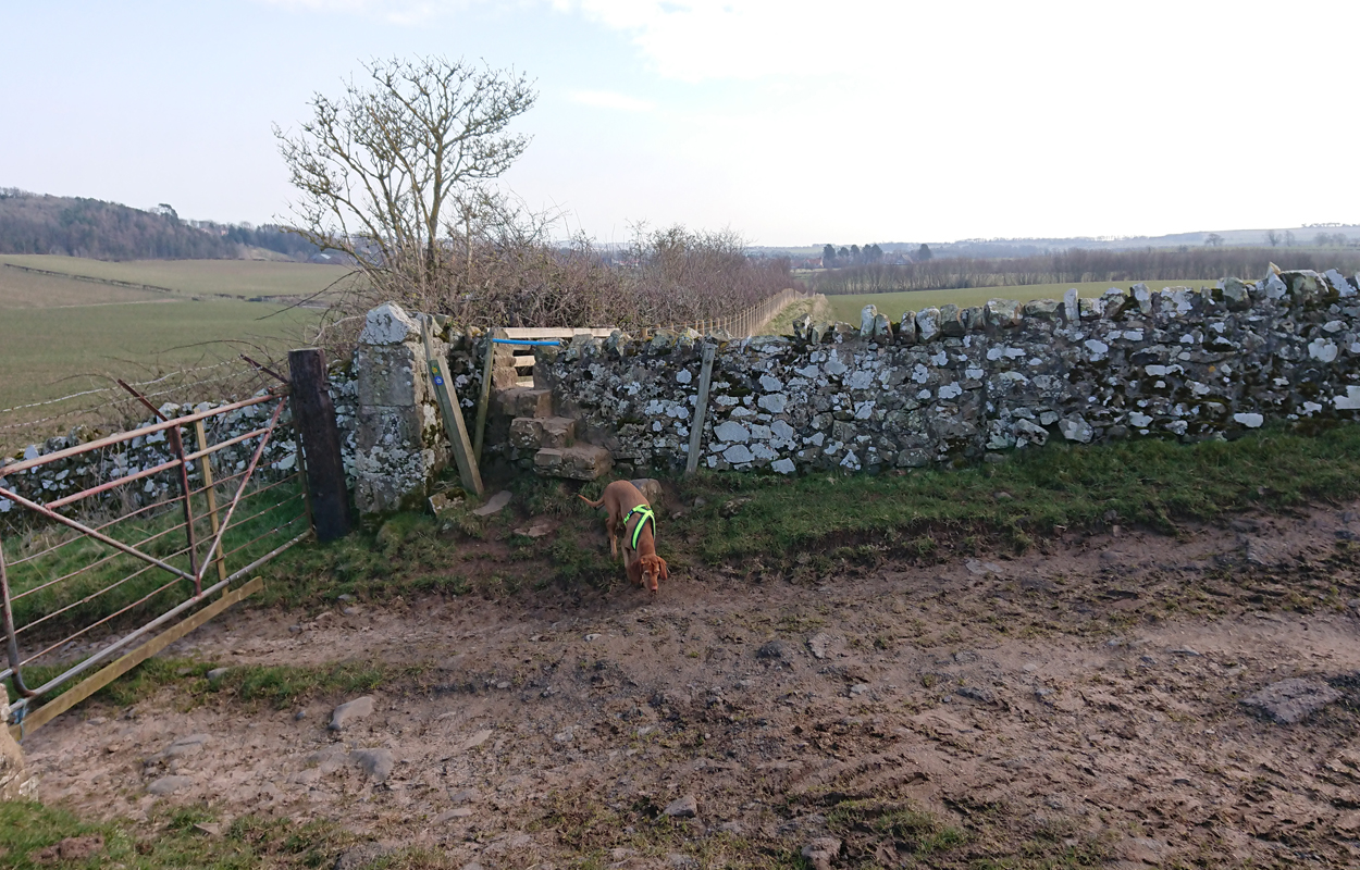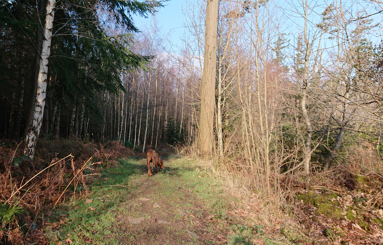Verderop ligt de spoorbrug alweer. Ik heb Fleur nog even aan de riem gehouden en ik hou haar aan de riem omdat ik een Pointer aan zie komen. De Pointer komt blij aanrennen en wil niet meer weg. Dan krijg ik het aan de stok met de bazin. Of ik even wil wachten omdat de hond niet meer met haar mee wil. Dat wil ik op zich wel maar het is een beetje gedoe en als ze ineens aan de riem van Fleur begint te trekken dan zeg ik dat ze daarmee moet stoppen. ‘don’t be so touchy’ zegt ze. Ik vind het niet nodig dat ze aan mijn hond gaat zitten dus ik snap het probleem niet maar goed. ‘It is not your countryside you know?’ bijt ze me toe. ‘But it is your dog’ probeer ik nog maar dat helpt niet. ‘My God I was enjoying my day until I met you’ krijg ik te horen waarom ik ‘same here’ antwoord. Uiteindelijk vraag ik maar of ze het goed vindt als ik haar hond bij zijn halsbandje pak en zo komt de hond alsnog bij zijn bazin terecht. Ze zegt nog sorry voor haar uitval maar het onheil is natuurlijk al geschied. Ik loop door en verwonder me over deze ontmoeting. Ik was ook niet vriendelijk misschien toen ze aan Fleur begon te sjorren maar dat lijkt me niet gek. Bovendien was ik netjes gestopt om haar het hondje te laten pakken. Maar goed. Gek hoe zoiets dan loopt eigenlijk. Ik moet er wel om lachen eigenlijk en hobbel weer rustig door.
