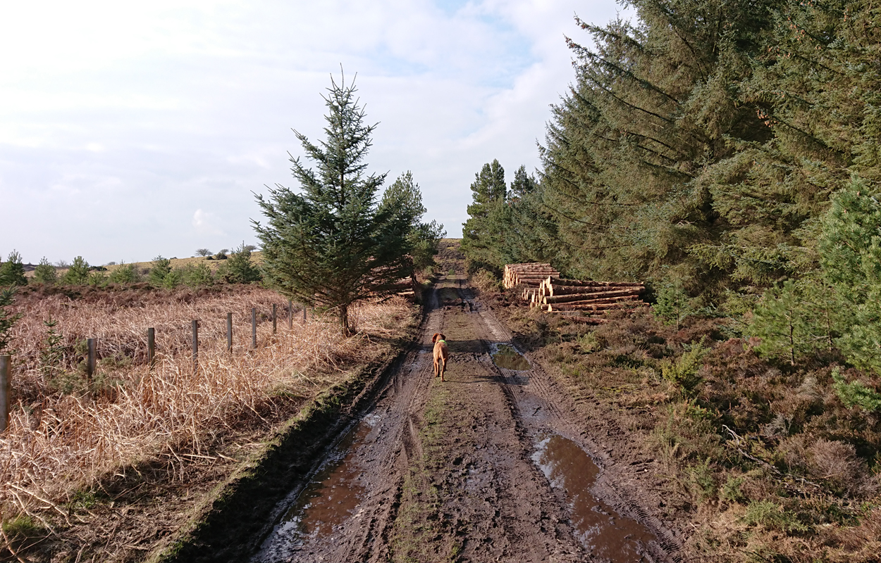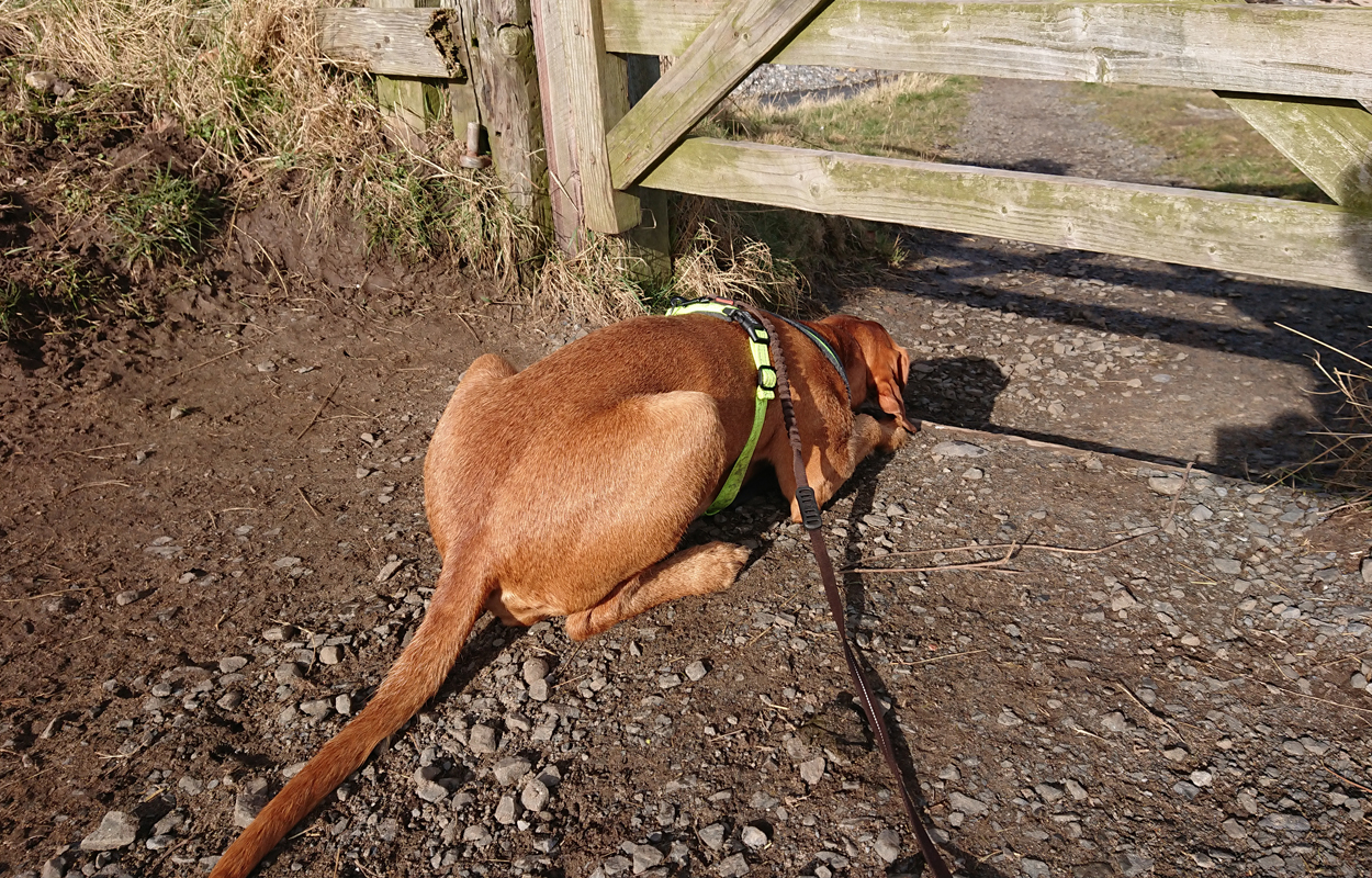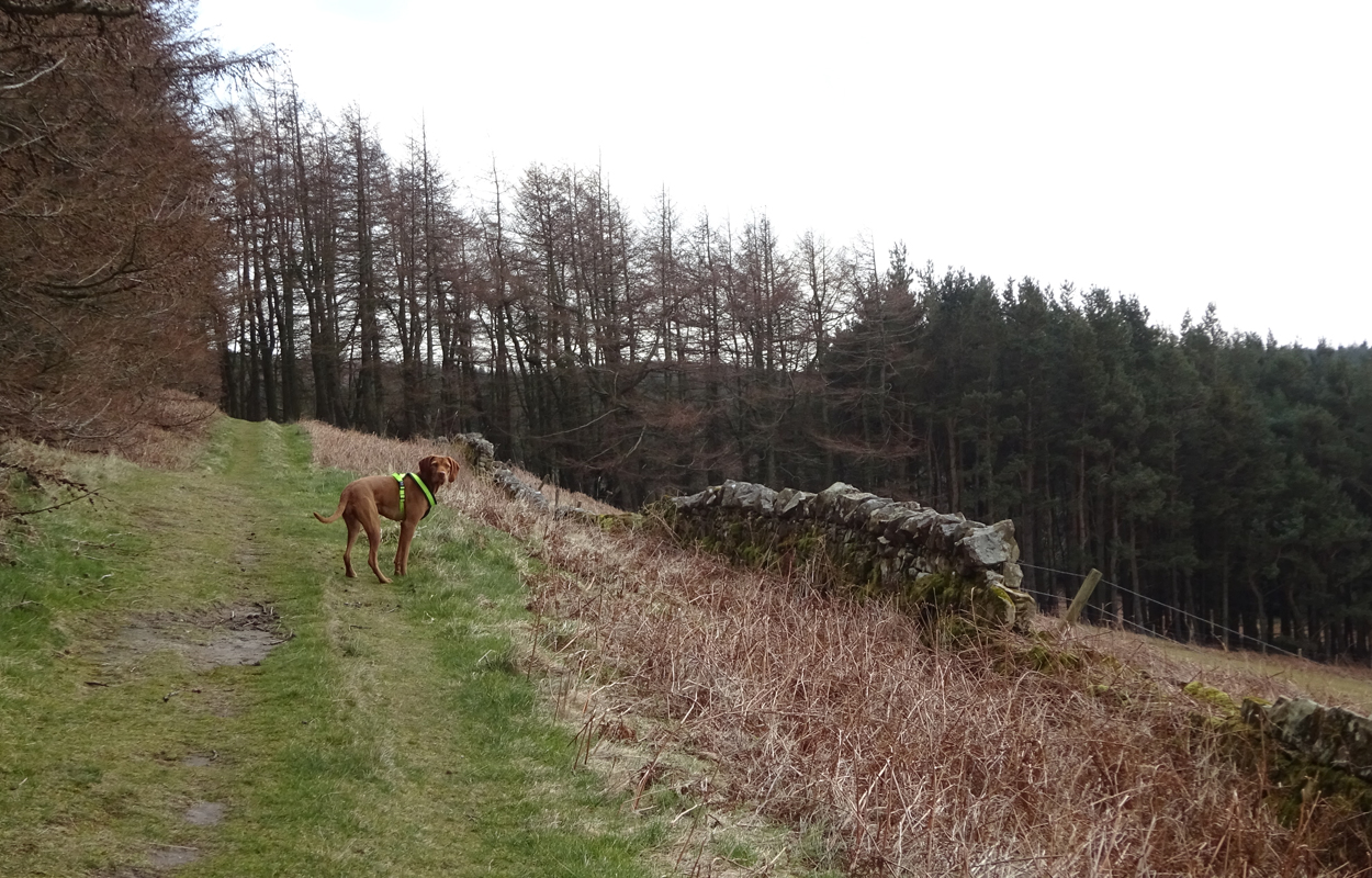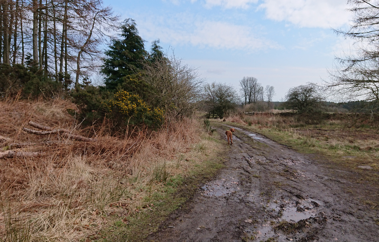 Verderop ligt de spoorbrug alweer. Ik heb Fleur nog even aan de riem gehouden en ik hou haar aan de riem omdat ik een Pointer aan zie komen. De Pointer komt blij aanrennen en wil niet meer weg. Dan krijg ik het aan de stok met de bazin. Of ik even wil wachten omdat de hond niet meer met haar mee wil. Dat wil ik op zich wel maar het is een beetje gedoe en als ze ineens aan de riem van Fleur begint te trekken dan zeg ik dat ze daarmee moet stoppen. ‘don’t be so touchy’ zegt ze. Ik vind het niet nodig dat ze aan mijn hond gaat zitten dus ik snap het probleem niet maar goed. ‘It is not your countryside you know?’ bijt ze me toe. ‘But it is your dog’ probeer ik nog maar dat helpt niet. ‘My God I was enjoying my day until I met you’ krijg ik te horen waarom ik ‘same here’ antwoord. Uiteindelijk vraag ik maar of ze het goed vindt als ik haar hond bij zijn halsbandje pak en zo komt de hond alsnog bij zijn bazin terecht. Ze zegt nog sorry voor haar uitval maar het onheil is natuurlijk al geschied. Ik loop door en verwonder me over deze ontmoeting. Ik was ook niet vriendelijk misschien toen ze aan Fleur begon te sjorren maar dat lijkt me niet gek. Bovendien was ik netjes gestopt om haar het hondje te laten pakken. Maar goed. Gek hoe zoiets dan loopt eigenlijk. Ik moet er wel om lachen eigenlijk en hobbel weer rustig door.