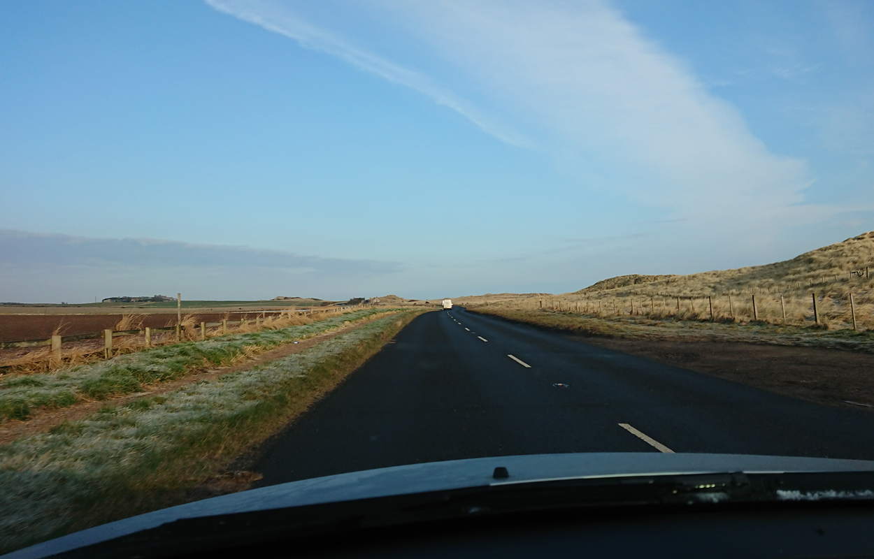 Eergisteren hebben we het stukje Seahouses/Bamburgh gedaan van de ultra en wat nog rest is eigenlijk vanaf de start naar de stepping stones en vanaf de golfbaan op Foxton Hall naar de stepping stones. Er ontbreken dan nog twee kleine stukjes namelijk Beadnell naar Seahouses wat ook aardig is maar erg kort en het stukje vanaf de golfbaan op Foxton Hall naar Boulmer waar ik het eindpunt had gelegd op een eerder rondje. Op zich is dat laatste stukje niet zo lang, dus als het vandaag een beetje goed gaat, zou ik door kunnen lopen naar Boulmer en weer terug kunnen gaan naar de golfbaan. Het waait alleen vandaag wel keihard dus ik moet maar eens zien hoe het allemaal loopt. Het is ook niet zo zonnig bij vertrek dus vooruit maar…. Eerst richting de golfbaan dan maar! Om 8.15 vertrekken we daar vandaan dus het is maar goed dat ik redelijk vroeg op was en kon vertrekken. Ik heb weer een energy bar bij me voor ukkie. De vorige keren is dat allemaal lekker opgegeten na de run dus dat werkt goed. Geen lege maag! Vanmorgen heeft ze ook eerst al iets gegeten dus dat lijkt ook wat beter te gaan. Ik parkeer de auto en loop richting de golfbaan. Wat een wind zeg! Ik ben benieuwd hoe het loopt allemaal maar volgens mij heb ik wind mee op de terugweg. Ik hoop het maar want het is best een stukje.