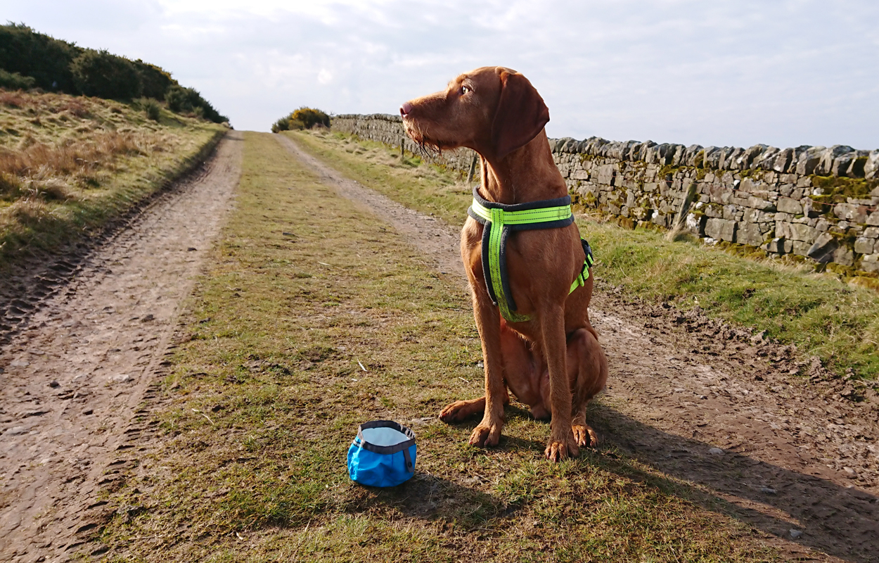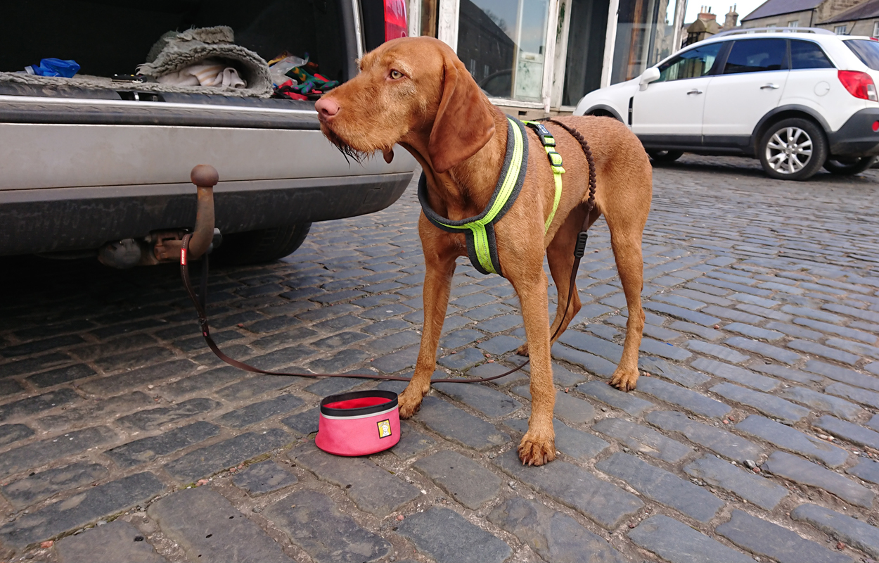 Ik doe woefje haar jasje aan in de auto en rijd naar Pets at home in Alnwick dat op een kwartiertje rijden ligt. Daar ben ik nu dichterbij dan vanaf huis dus ik ga wat boodschappen doen voor Fleur en wat lekkers halen bij Sainsbury. Bij Pets at Home kwam ik eigenlijk voor wat blikken Country Hunter maar bij het weg gaan zie ik ineens een zakje met gevriesdroogd vlees dat een complete dinner is. Zou dat iets zijn voor Fleur onderweg? Lekker licht, geen vieze handen en gezond? Ik besluit een zakje te kopen en open de klep van de auto. Ze vindt het heerlijk en in no time is het zakje leeg. Ik ga terug naar de winkel om er meer van te kopen maar ze hebben maar 6 zakjes op voorraad. Die neem ik vast mee in ieder geval. Lijkt me ideaal. Ook koop ik een road runner van ezydog. Ze hadden niet de vario 6 maar wel deze dus ik ga eens kijken of het wat is. Nu eerst richting huis!