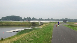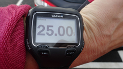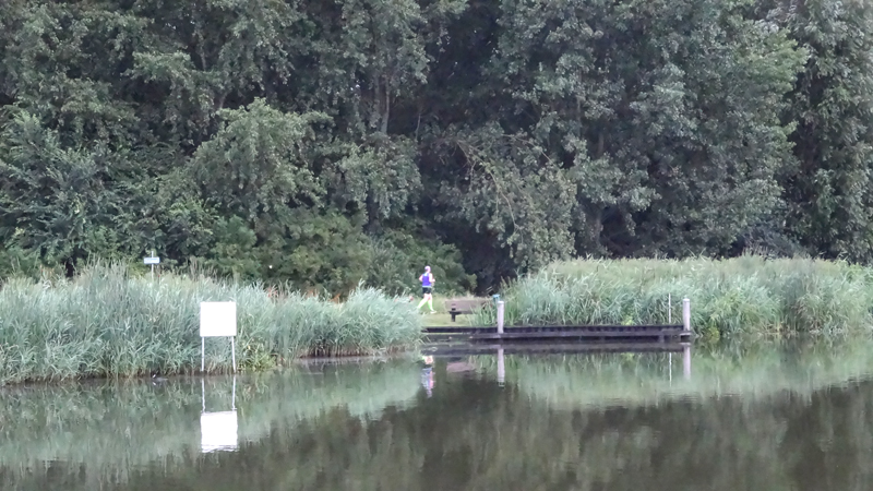 Na de roeibaan linksaf richting het bruggetje… Zware poten en ik kwam nauwelijks tegen het bruggetje op. Daar was ook de eerste kilometer voorbij. Ik zie in de gauwigheid als ik kijk al een 6 staan in het schermpje. Oeps.. langzamer dus dan 6 min/km. Balen maar gewoon doorzetten dan maar. Letten op lichaamshouding… cadans een beetje omhoog, hellen vanuit de enkels, geen heupknik, niet vanuit de benen lopen maar vanuit de kern. Kracht is niet nodig, gewoon laten vallen en vooruit maar. Toch is de eerste mile redelijk snel voorbij. De tweede kilometer komt al snel in beeld en ik ben al ruim onder 6 min/km gezakt. Gelukkig. Nog even doorzetten….en ja, daar is de 2,5 km al in beeld. Ik weet niet meer wat daar stond als tijd want ik keek te laat en toen zag ik al 15.19 in beeld. Bij de derde kilometer zie ik dat ik al bijna op de 5.45 min/km ben uitgekomen. Dat was ook mijn streeftijd dus nu vasthouden maar… De zon schijnt uitbundig. Pal op mijn gezicht. Ik heb het berewarm, het zweet druipt over mijn gezicht. Mijn lichaam is niet eens echt warm, maar ik zweet gewoon als een otter en ik heb een heel warm gezicht. Niet zeuren nu, gewoon even doorlopen, voordat ik bij de snelweg weer ben, is het rondje al klaar. De vierde kilometer komt in beeld…. Het gaat best aardig, af en toe tikt de hartslag de 157 aan en dat merk ik op zich wel. Maar het mag ook gewoon bij dit tempo. Niks aan de hand, eigenlijk gaat het makkelijker dan de vorige keer toen ik echt wilde stoppen om even te wandelen. Nog maar een kilometertje, er kan dus niets meer gebeuren….. En ja… ik klok af op een vrij aardige 5.47 min/km. Helemaal niet gek met dit weer en mijn 10K tijd van Rotterdam dit jaar. Niet slecht en het is blijkbaar wel trainbaar dus. Jammer dat er drie van deze trainingen zijn uitgevallen.