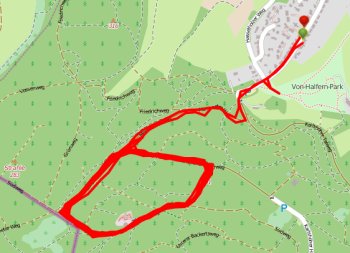 Na de laatste ronde kon ik lekker naar beneden rennen richting parkeerplaats. Ik klokte af op 23,5 km en de rest was cooldown. Even woef wat laten drinken in het parkje en naar huis.