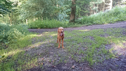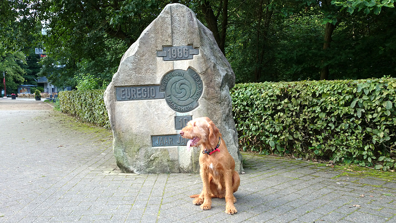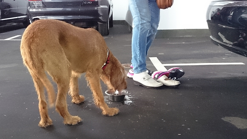 Thuis aangekomen kwam ik de eigenaresse tegen van de korthaar Vizsla die hier ook woont. Zij gaf waf meteen een bakje water wat woeffie dankbaar opslobberde. Maar ze was niet te vermoeid om nog even lekker te dollen met die andere hond dus keihard hijgend kwamen we uiteindelijk thuis.
