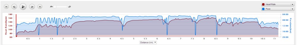De cooldown gaat wel erg rustig maar het kan me niet zoveel schelen. De kerntraining zit er op en ik dribbel braaf de mile uit voor het gevoel. De hartslag blijft alsnog binnen MAF daarbij dus dat valt mee.