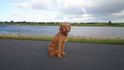 Ik geniet nu van het zonnetje en de omgeving met alle mooie vogels. Ik anker het moment. Een redelijk goede training die ik heb doorgezet ondanks dat het moeizaam ging en zwaar aanvoelde. Als we verder lopen, komen er grote wolken voor de zon. Ineens is het fris. Ik moet lachen want ik was juist vroeg vertrokken om de warmte voor te zijn en nu betrekt het ineens rap en is het een stuk frisser. Ik denk zelfs dat het gaat regenen straks. Gauw een kiekje van woef.
