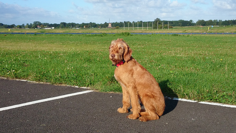 Woef hijgt er inmiddels ook van, net als ik want het is echt warm geworden. Even een kiekje tijdens de cool down dan maar.