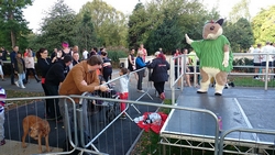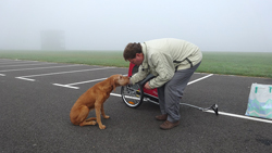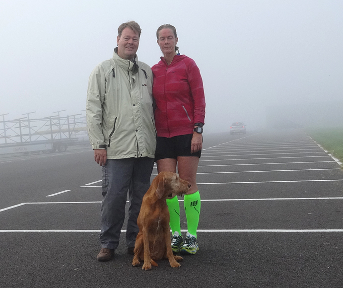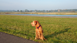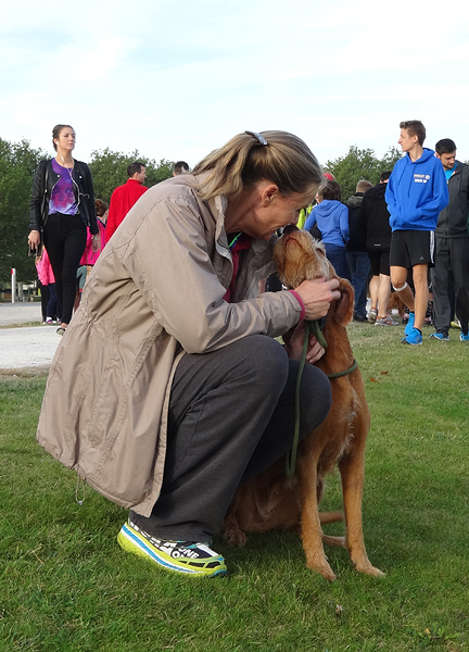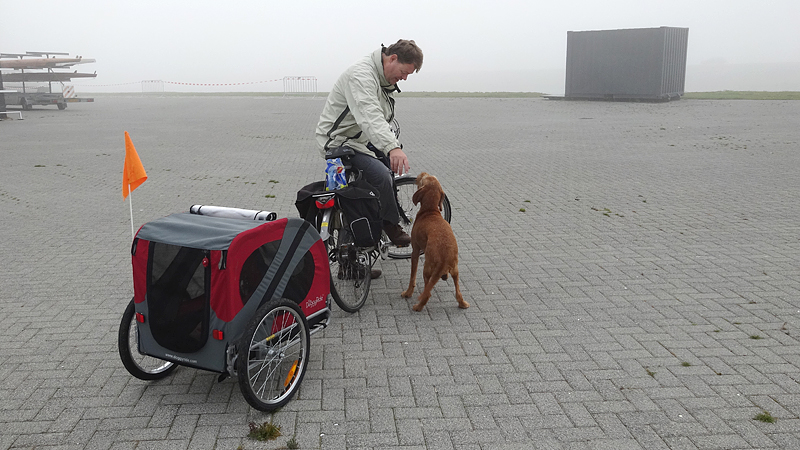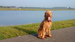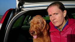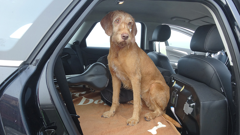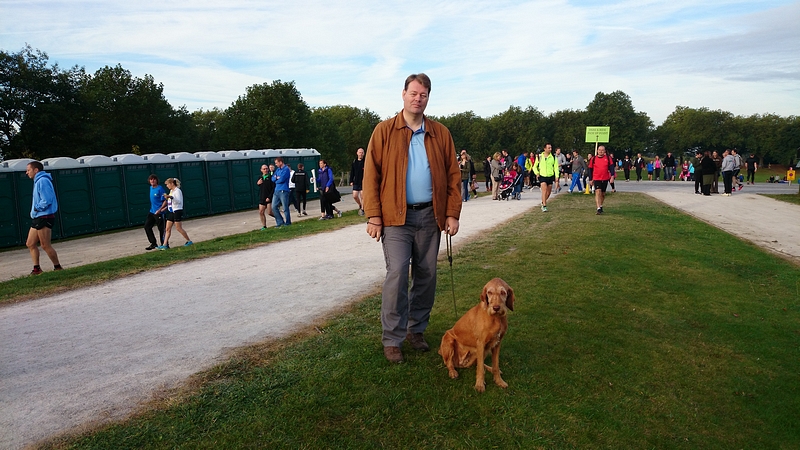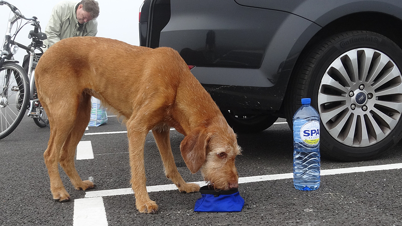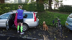 Daarna gaan we maar eens rustig op pad naar de startvakken. We nemen woef vast mee, want het is een redelijk rustige sfeer dus dat moet ze wel kunnen denk ik. Bovendien is het al vrij warm dus beter maar meteen uit de auto!