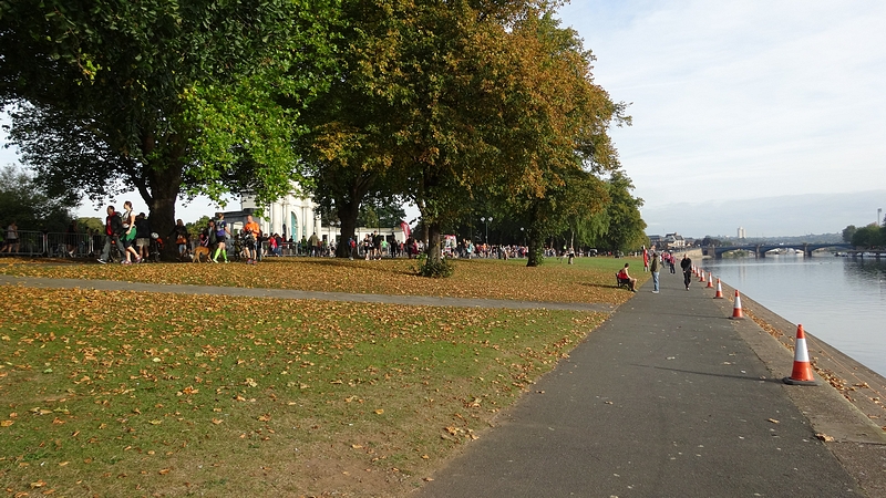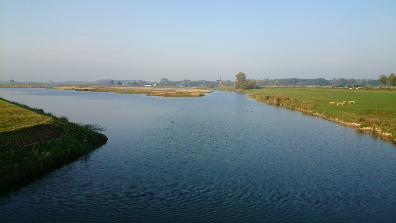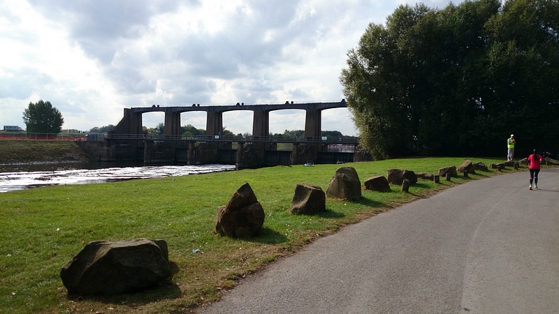 Na de brug nog een stukje langs de rivier. Het is inmiddels echt wel warm geworden. Maar met mijn spons gaat het nog prima eigenlijk. Ik maak alleen wel de vergissing om niet eens op mijn horloge te kijken hoe lang ik al onderweg ben eigenlijk. Ik vermoedde namelijk dat het echt wel heel erg slecht zou worden qua eindtijd, en was bang dat het demotiverend zou werken.