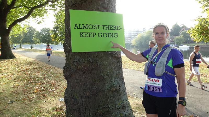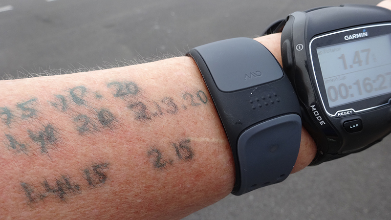 De klok staat op 4.58 en dat betekent dat ik dus nog makkelijk plan B had kunnen halen als ik iets eerder gekeken had. Nu ik nog een aardig stukje moet, weet ik al dat ik toch over de 5 uur heen zal schieten. Onnodig en zonde en van te voren zeker niet verwacht. Die mensen die ik onderweg hielp, hebben niet veel tijd gekost maar me alleen wat uit het ritme gehaald. Dan nog. Waarom ik nou niet meer in mijn eigen tempo ben gekomen, snap ik toch niet zo goed. Ik ben na 20 km ongeveer over gegaan op de oude RWR ratio van 2/30 in plaats van de 500 meter laps. Dat voelde op zich OK maar dan nog. Heb ik nou te zeer vertraagd om niet te snel te gaan? Het tempo was goed maar stevig aan de ‘snelle kant’ van onze trainingen. Dan nog, dan had het zeker 25 km zonder problemen op dát tempo moeten gaan.