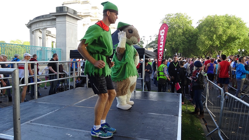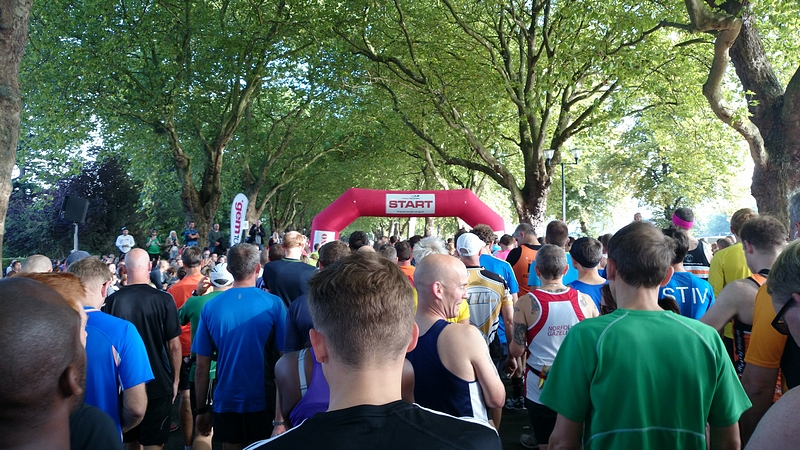 Ik doe dus niet mee met de warming up want koud gaan stretchen doe ik nooit en nu dus ook niet. Ik babbel wat met mensen om me heen en van mij mag het wel beginnen eigenlijk.