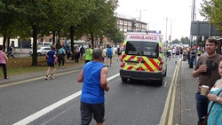 Ondertussen gieren de ambulances langs en door het parcours. Heel vervelend, want ik kan er nooit zo goed tegen, al die gillende ambulances. Zeker niet in combinatie met sport, of een evenement dat in principe gewoon leuk moet zijn en niet een dodelijk of gevaarlijk iets.