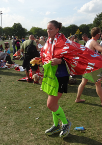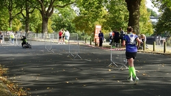 Ondertussen loop ik richting de roeibaan en S gaat alvast naar de laatste post voor de finish.