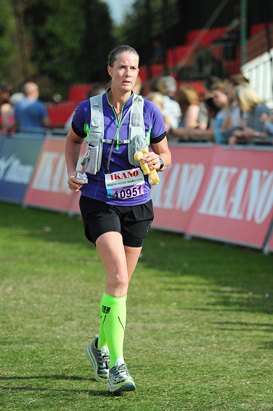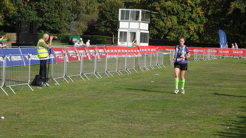 Al mijmerend kom ik bij de afslag naar de finish. Ineens in de volle zon. Wat is het warm! Ik sukkel over het gras en zie niet eens wat mijn tijd nou gaat worden en om eerlijk te zijn had ik dus al besloten dat ik me niet even uit de naad zou gaan rennen op weg naar de finish aangezien ik de 5 uur toch al voorbij was. Zwak misschien maar soit. Zeker niet in de volle zon. Jammer maar helaas. Dure en wijze les. Even eerder op het horloge kijken en even berekenen wat mogelijk is en wat niet. Niet op deze manier dus. Ook onderweg een beetje experimenteren om weer in een ritme te komen zoals de metronoom aanzetten en niet in de zak laten zitten.