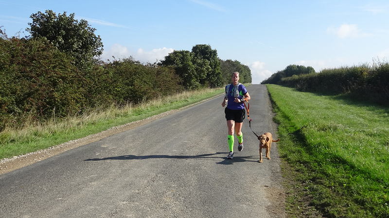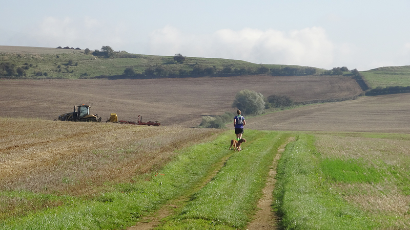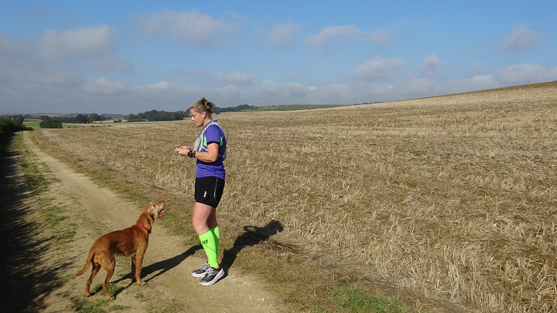 Hoewel de zon er echt op los schijnt, ben ik niet oververhit. Ik heb inmiddels alweer even een spons bij me en die maak ik voortdurend nat. Bij elke waterpost neem ik twee waterzakjes aan en probeer ik een deel over mijn hoofd te gieten en de spons nat te maken. Ik ben er niet erg handig mee en ik verlies er ook wat tijd mee merk ik. Hannes!