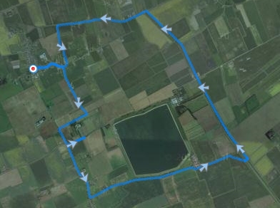 Omdat ik snel gelopen heb en mijn HF vrij hoog is, ga ik toch maar wel even een cool down doen. Dat is veel beter voor lichaam en spieren en ik wandel een stukje en dribbel verder terug naar de auto. Na ruim 12 km zijn we weer terug bij de pub.