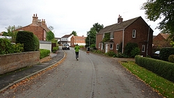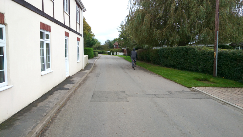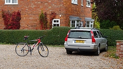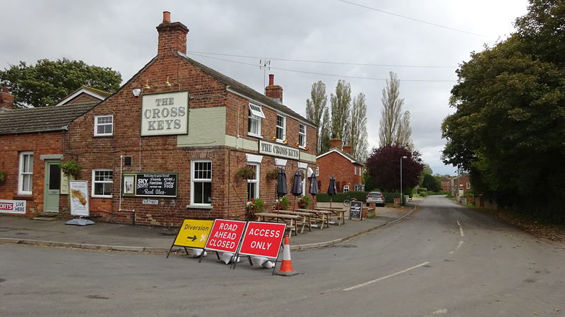 Het begint toch zachtjes te regenen en we lopen door. Ik kijk op de kaart en besluit dat bij een bepaalde kruising rechtdoor en linksaf het snelste is, maar S. is eigenwijs en zegt dat als we linksaf slaan we sneller bij de pub zijn. Nee dus maar ik loop en loop en zeg dat hij maar ast door moet fietsen om de fiets op het dak te zetten. Als ik dan uiteindelijk rechtsaf mag slaan richting de pub, moet ik inderdaad slingerend het hele dorp nog door en blijkt de route van S dus niet sneller. Maar het regent gelukkig niet hard en de auto is nu dichtbij.