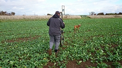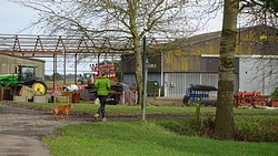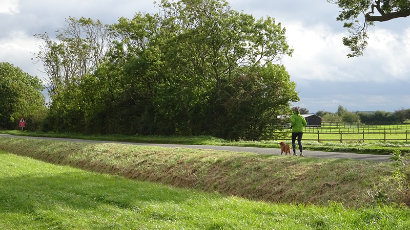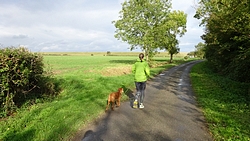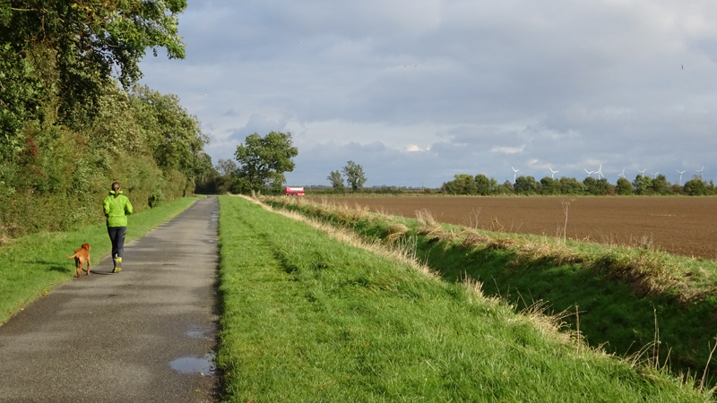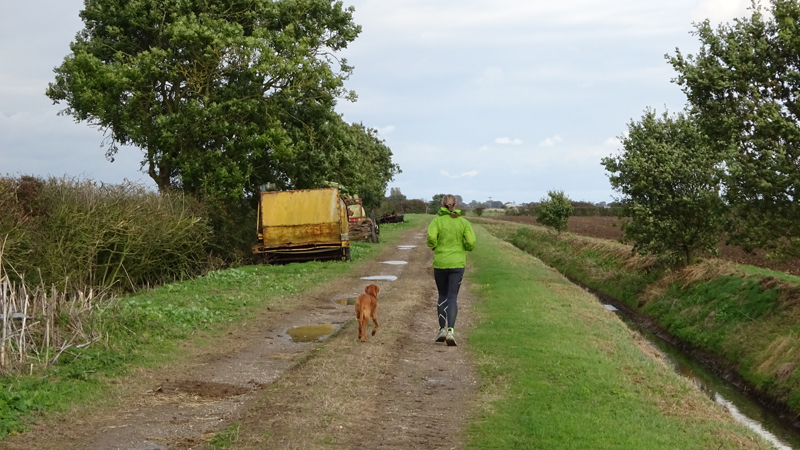 Even door het dorpje en daarna rechtsaf. De route gaat meteen door een veld maar is nog prima te doen. Woef vindt alles leuk natuurlijk en kan lekker los lopen.