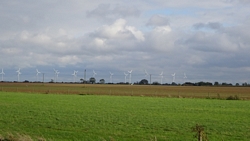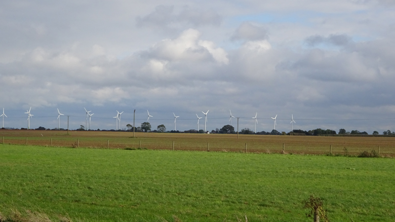 Over de weg gaat wel aardig en eigenlijk willen we dat reservoir nou wel even bekijken en slaan aanvankelijk links af wee de weg op. Maar het waait keihard en het reservoir blijkt een paar meter boven de grond achter een soort dijkje te liggen. We keren weer om en besluiten eerst de route te volgen en aan de andere kant eventueel de omweg naar het reservoir te maken. We zullen straks toch zeker wel wat te zien krijgen van dat reservoir?