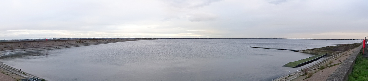 We wandelen naar boven, de dijk op richting het water. Tsja. Niks aan gemist zo te zien. Vreemd genoeg lijkt er wel een pad rond het reservoir te lopen maar goed, zo liep de route nu eenmaal niet. We gaan gauw terug naar de auto en lekker naar huis.