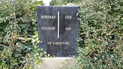 Eerst lopen we langs het GMT punt. Stom bordje dat lijkt op een grafsteen. Maar toch leuk