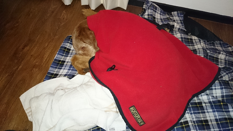 Waf keek af en toe braaf of ik haar nog wel bij kon houden. Haar conditie is duidelijk beter dan die van mij! We hadden het rondje dus ook zo gedaan en daarna zijn we naar de hotelkamer gegaan waar ik weer het kompres op de poot heb gelegd en prompt in slaap viel. Woef ook, want ze was duidelijk wel moe geworden van ons ommetje.