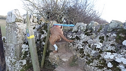 Na een kilometer staan we alweer allemaal bij elkaar omdat er een hekje is. Aangezien we niet over hekken mochten klimmen (werd gezegd tijdens de briefing hoorde ik nog net), staat iedereen dom te wachten want door een kissing gate kan maar 1 persoon tegelijk. Handig zeg. Na de eerste kissing gate hobbel ik weer vrolijk verder en sluit braaf alle hekken die open zijn blijven staan. Ik weet nog steeds niet goed hoe ik ga lopen. Vorig jaar had ik een lekker plannetje en dat voelde goed. Maar ik heb heel anders getraind dit jaar.