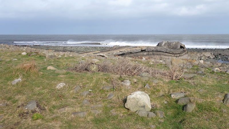 Dan komen de rotsen na Monkshouse en daar waar anderen gaan wandelen, loop ik erover heen. Liever rotsen dan zacht zand!