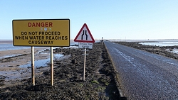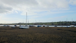 Even een klein stukje over de weg en rechtsaf richting de zee maar weer. Langs de bootjes en richting de parkeerplaats.