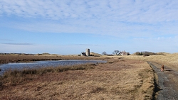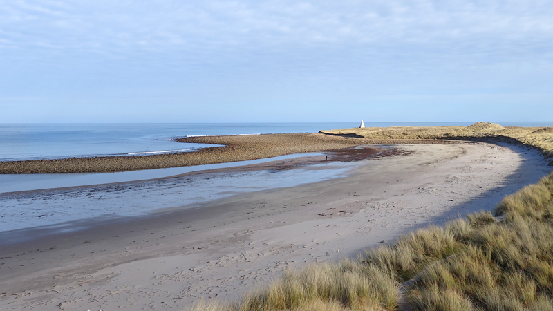 Van High Newton loop ik naar Beadnell. Gesneden koek want dit heb ik zo ontzettend vaak gelopen de afgelopen weken. Beadnell is dichtbij en vanaf daar kan je lekker lopen zo ver je wilt. Hier is mijn eerste smokkel moment. Ik loop namelijk vanaf de brug niet rechtsaf oer het strand voor 1.500 mtr maar ga rechtdoor door de duinen. Ik heb geen zin om knie of rug te belasten met het zand op het strand. De afstand is precies gelijk en de duinen lopen ook niet zo makkelijk dus ik zie het niet als ‘cheaten’. Ik loop door en kom A. en S. weer tegen bij de parkeerplaats. Daar neem ik toch een paracetamol en ga weer verder.