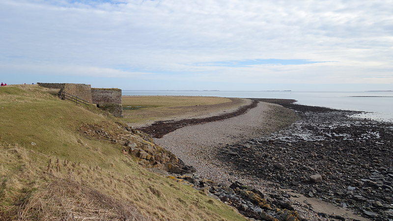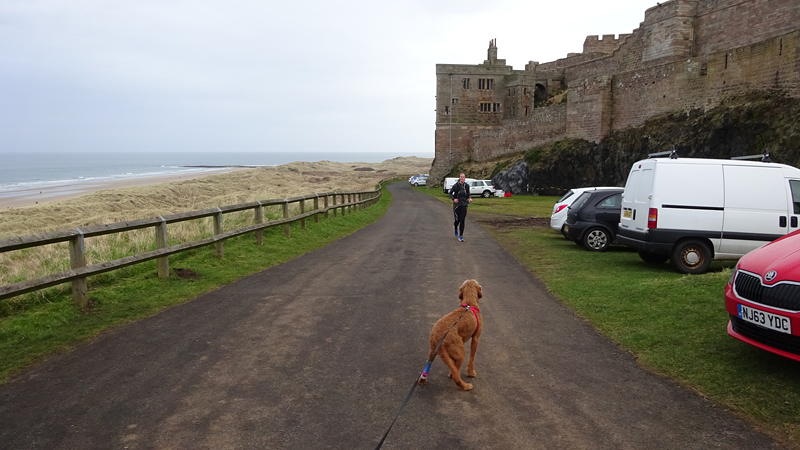Ik vraag of S de schoenen al bij zich heeft. Ik zou graag wisselen maar de schoenen liggen in de auto. Logisch want we zouden pas veel later ruilen. De lieverd komt me later net voordat ik het strand op ga nog achterop met mijn schoenen maar we spreken af dat we wisselen bij Bamburgh Castle.
