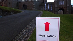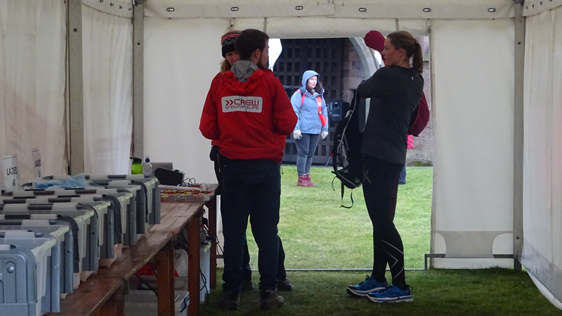 We komen aan bij het kasteel en lopen naar de stables voor registratie. Ik krijg het nummer op mijn hand geschreven en rechts krijg ik een kokertje om voor de tijd registratie.
