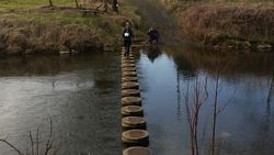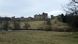 Ik lummel wat heen en weer en kijk naar het kasteel dat niemand lijkt te zien. Toch best fraai en echt een mooi punt hier zo langs de river Aln. Als twee lopers vragen of ik een foto van ze wil maken, keren ze zich af van het kasteel. Ze hebben het niet eens gezien en als ik ze erop wijs en vraag of het misschien leuk is als achtergrond zijn ze heel verrast. Tsja, die minuten he….