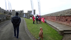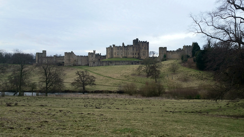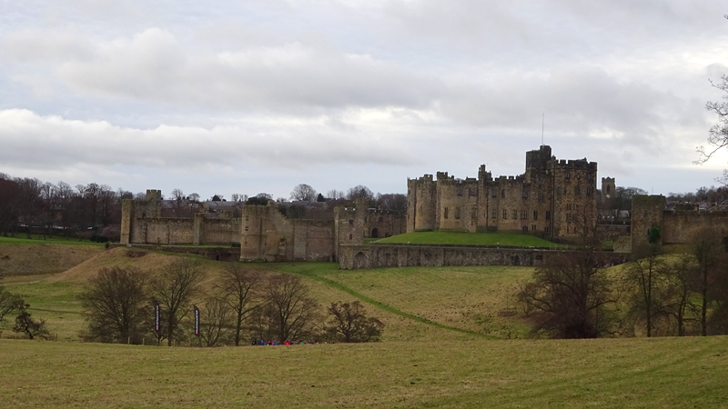 Uiteindelijk komen we bij Alnwick Castle aan. Natuurlijk moeten we weer over het hek klimmen. Want je kunt niet verwachten dat de organisatie een belletje pleegt om het hek open te laten maken! Stel je voor. Ik zet dus mijn rugzak op de grond en klim over het hekje. Daarna begint het wachten op de briefing die niet te verstaan is vanwege de wind en al helemaal niet meer wanneer de luidspreker ermee ophoudt.