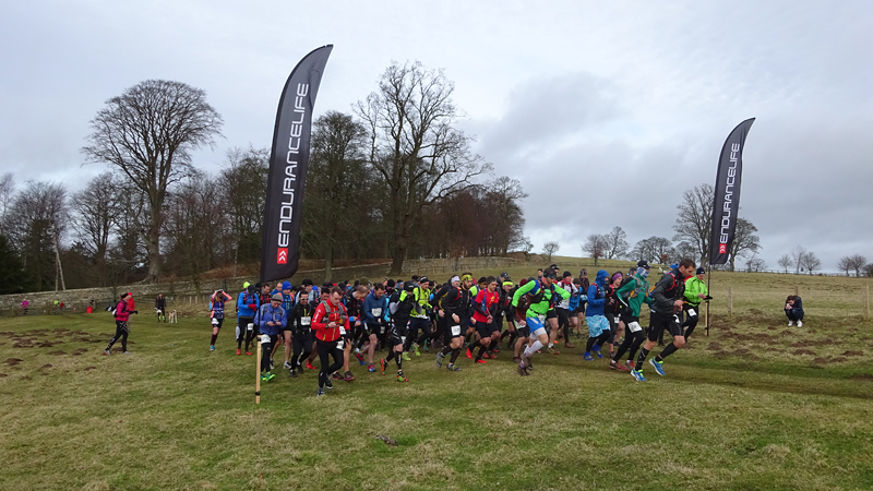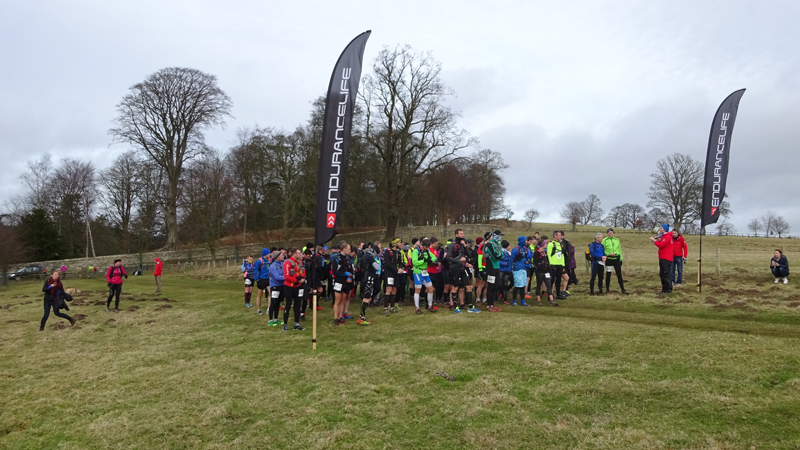 Ik nader High Newton. Veel lopers inmiddels want er zijn diverse afstanden en ik weet dus al lang niet meer of ik lopers inhaal of dat dit allemaal kortere afstanden lopers zijn. Ik vind het voortdurend ingehaald worden door de lopers op het smalle pad hierheen uitermate vervelend. De lopers zijn leuk, de sfeer is OK want iedereen moedigt elkaar aan, hoewel ik bij ‘good effort’ altijd denk dat ze bedoelen ‘leuk geprobeerd’. Bij High Newton moeten we een hekje over klimmen en daar gaat het voor veel mensen mis en schieten ze in een kramp. Ik merk wel dat ik koude benen heb en vreemd genoeg zijn mijn armen koud. Achteraf een beetje sukkelig, want ik had mijn sleeves gewoon aan moeten doen maar daar heb ik onderweg niet aan gedacht. Die armen gaan me nog opbreken op de route want het wordt kouder en kouder, waarschijnlijk doordat iedereen aanvankelijk lekker opgewarmd was in de ochtend. Ik neem nog een stukje banaan en vul mijn flesje bij met water. Een dame is niet OK en wil stoppen. Ik bied aan om samen rustig verder te lopen maar ze wil niet meer. Ik ga verder en iemand anders zegt me dat het ‘not supposed to be fun’ is. Tsja met de mindset van vandaag zijn dit soort opmerkingen niet fijn. Want ik wil juist wel fun hebben! Mijn linker hersenhelft roept hard dat er niks aan is. Rechts doet vreselijk zijn best om links te overrulen. Ondertussen loop ik gewoon door. Ik lig nog steeds ‘voor’ op schema van vorig jaar. Boeien. Maar aan de andere kant ook wel weer leuk. Dubbel dus.