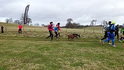 Woef kijkt gespannen toe achter het hek. Ik hoor vaag wat praten door de organisatie. Iets over het korte stukje weg voor de stepping stones waar het gevaarlijk is en dat je uit de wedstrijd gehaald wordt als je rechts op de weg gaat lopen. Iets over blue lights waarschuwen als iemand in de problemen is en het nummer van de organisatie.