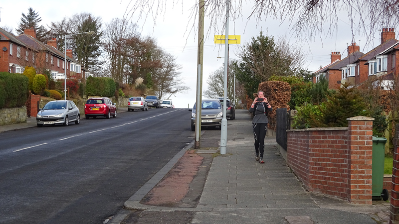 De wind is inmiddels gedraaid. In de ochtend had ik nog graag gewild dat ik een korte mouwen shirt aan had gehad, maar het voelt nu een stuk frisser. Ik loop door Low Newton en ook daar mis ik A. en S. Blijkbaar hebben we allemaal geen plan ofzo want het blijkt dat ze ook hier gewoon te laat waren. S. kan nog net een foto maken als ik bovenaan de heuvel loop. Weg ben ik weer. Op weg naar High Newton waar het volgende CP zal zijn.