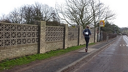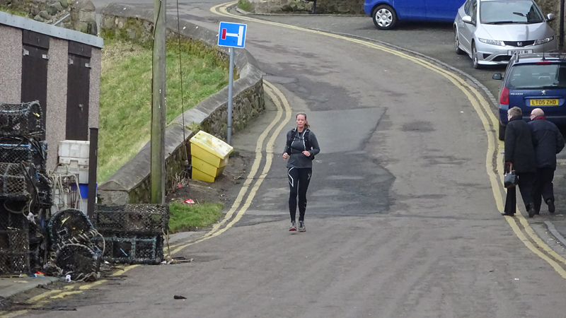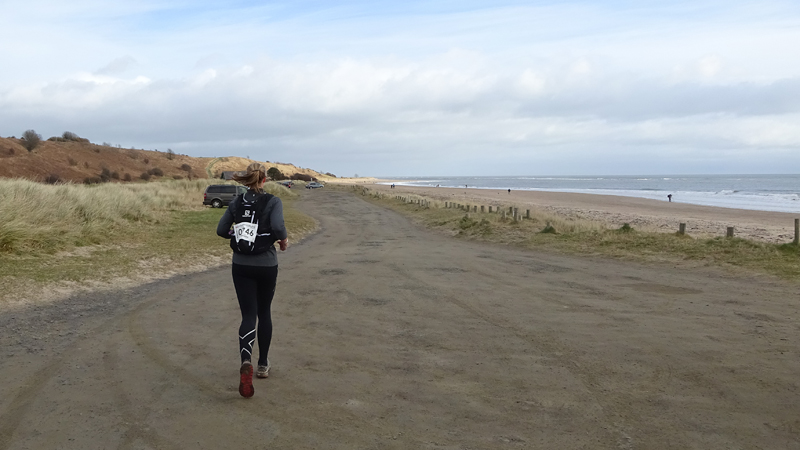 Raar genoeg is het lopen dan ineens een eitje. De mind is toch een raar iets. Ineens ben je ‘leider’ en gaat het heel makkelijk. De man is blij en we babbelen wat over Schotland (waar hij vandaan komt), de west highland way en meer routes. Hij heeft veel ervaring maar ook last van de koude en de wind vandaag. Nou, dan doe ik het dus niet eens zo gek blijkbaar. Ver voor ons uit lopen nog twee lopers. Ik ben dan wel langzaam geweest maar redelijk steady. Ik heb alleen mijn hele voorsprong teniet gedaan op het strand. Misschien (waarschijnlijk) was ik te voorzichtig. Ik weet het niet en het is ook niet erg.
