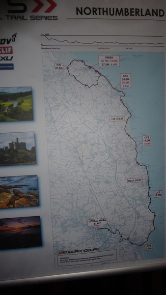 Vandaag moet het dan gaan gebeuren. Ik ga – net als vorig jaar – de ultra trail lopen. 38 miles langs de kust door weer en wind en over alerlei soorten terrein. Net als vorig jaar heb ik de route op sommige delen al verkend. Zo liep ik vaak vanaf Beadnell terug naar Low Newton, of verder door naar Craster, van Craster naar Alnmouth en liep ik vanaf de start naar de stepping stones en vanaf Foxton naar de stepping stones terug. Ik weet dat de stones vredig boven het water uitsteken want we zijn er gisteren nog even langs gereden. Ik heb alleen relatief weinig strand gelopen omdat ik dat heb vermeden vanwege de poot van woef. Ook heb ik Beadnell/Seahouses niet meer gelopen en ook niet de laatste weg lus. Vorig jaar had ik werkelijk alle etappes gelopen van te voren en had er ook een video van gemaakt zodat ik de route kon visualiseren. Dat deed ik ook in het zwembad. Ik zwom 60 baantjes en elke keer visualiseerde ik een kilometer. Dat bleek op de dag zelf prima te werken. Ik had een plan en dat heb ik uitgevoerd zoals ik wilde en dat was leuk.