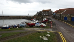 Het pad achter de huizen bij Craster is prima te doen en al snel loop ik door het dorp.