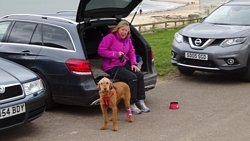 Om 6.45 komt A. aanrijden en al snel zijn we op weg naar Bamburgh castle. Ik weet nog steeds niet wat ik ervan vind. Waarom voel ik niet die knoop die ik wel had toen ik naar Simonside reed voor een mooie spannende tocht? Is dit nou cognitieve dissonantie? Ik snap mezelf niet zo goed eigenlijk. Woef zit zielig achterin. Ik zielig voorin.