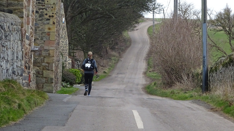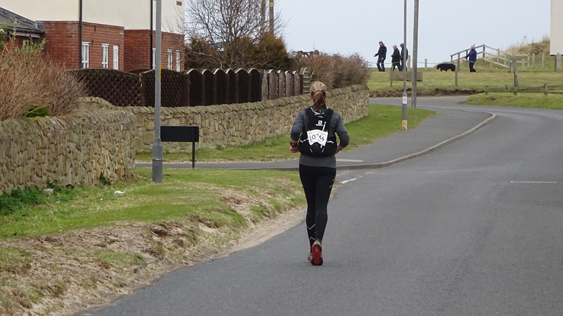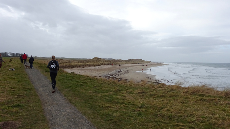 De route loopt onderlangs waar ik nooit loop en dat is prima te doen. Ik vervolg mijn weg langs het kasteel op weg naar de golfbaan van Embleton op weg naar Low Newton. Vanaf hier is het een thuis wedstrijd. Ik moet nog een gigantisch eind, nog 30 km ofzo maar het voelt als ‘dichtbij’. Het lopen gaat op zich ook prima, maar om een of andere reden heb ik er niet zoveel lol in als vorig jaar.