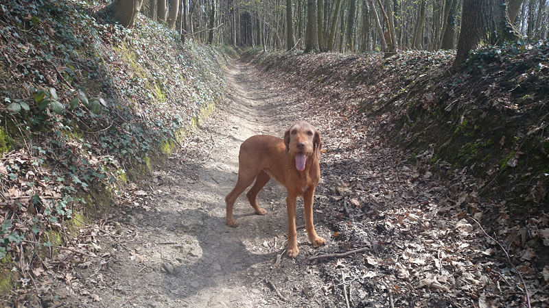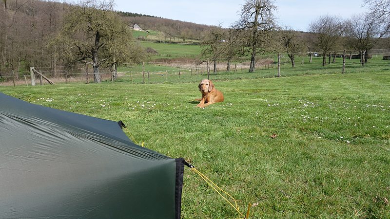Omdat het mooi weer zou worden en ik morgen in Aken moet zijn, besloot ik om te gaan lopen in Limburg en te overnachten op een boerderijcamping. Iets heel kleins, geen kinderspeeltoestellen, mooi uitzicht en geen caravans voor je neus of zoiets. Ik had alles al geboekt ruim van te voren, de route was klaar dus ik kon op pad! Rond 12.30 kwam ik aan en na een uurtje had ik een mooie plek gevonden, de tent opgezet en ingeruimd en was ik op weg voor mijn run met woef. Ik had een tussenstop bij boscafe ‘het Hijgend Hert’ gepland om daar ook iets te eten. Weer op gang komen daarna zou wel even een probleem zijn maar het zou niet zo ver zijn richting de tent dus vooruit maar. Maar zo ver was het nog niet, ik moest eerst nog beginnen met de run!