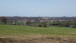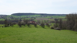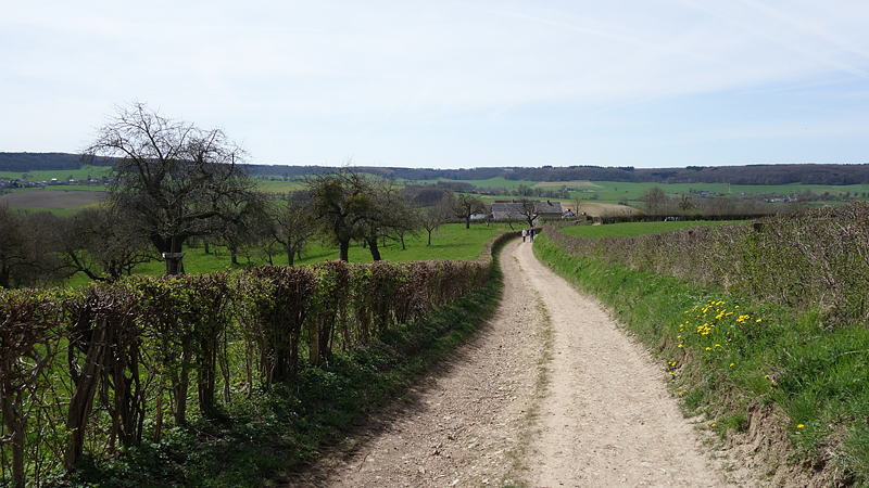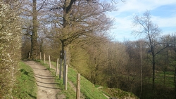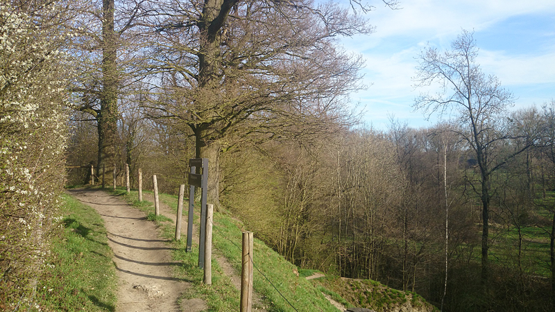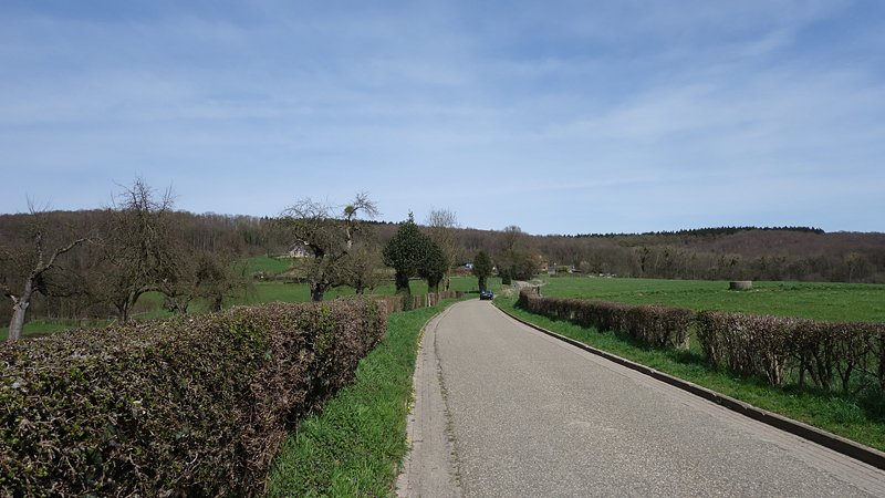 Ik had een route gevonden op de website die allerlei wandelingen heeft in Limburg. Beter een bestaande route gebruiken dan zelf het wiel uitvinden dacht ik. Op zich was de route ook wel aardig. Het begin ging over open landschap, en daarna liep ik het bos in. Nadeel in ons kleine landje is natuurlijk het feit dat je steeds op de weg stuit en overal wel de weg en het verkeer hóórt. Niet fijn! Bovendien vond ik het eigenlijk jammer om in het bos te lopen, want ik had gehoopt op de vergezichten die je in Limburg hebt. Maar we hobbelden vrolijk door en de kilometers gingen toch best snel voorbij. Het was allemaal prima te vinden overigens. Ik vraag me wel af of je niet makkelijker een beschrijving kunt lezen tijdens het lopen dan kijken op de kaart. Ik had nu de Teasi bij me en elke keer voor een afslagje piepte het apparaat dus dat liep ook wel goed.